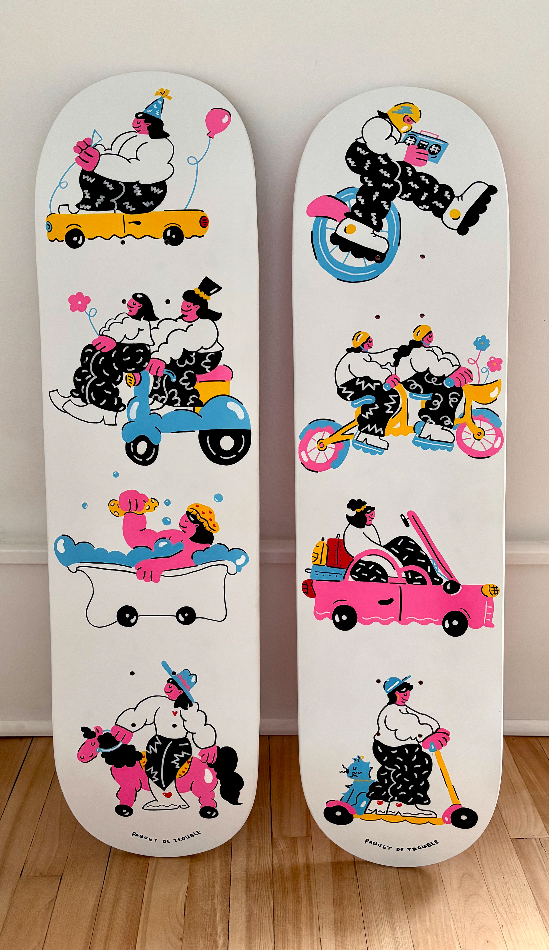 This exhibition took place as part of a skateboard event organized in collaboration with other local artists. The objective was to raise funds for Leucan, an organization dedicated to supporting children with cancer.