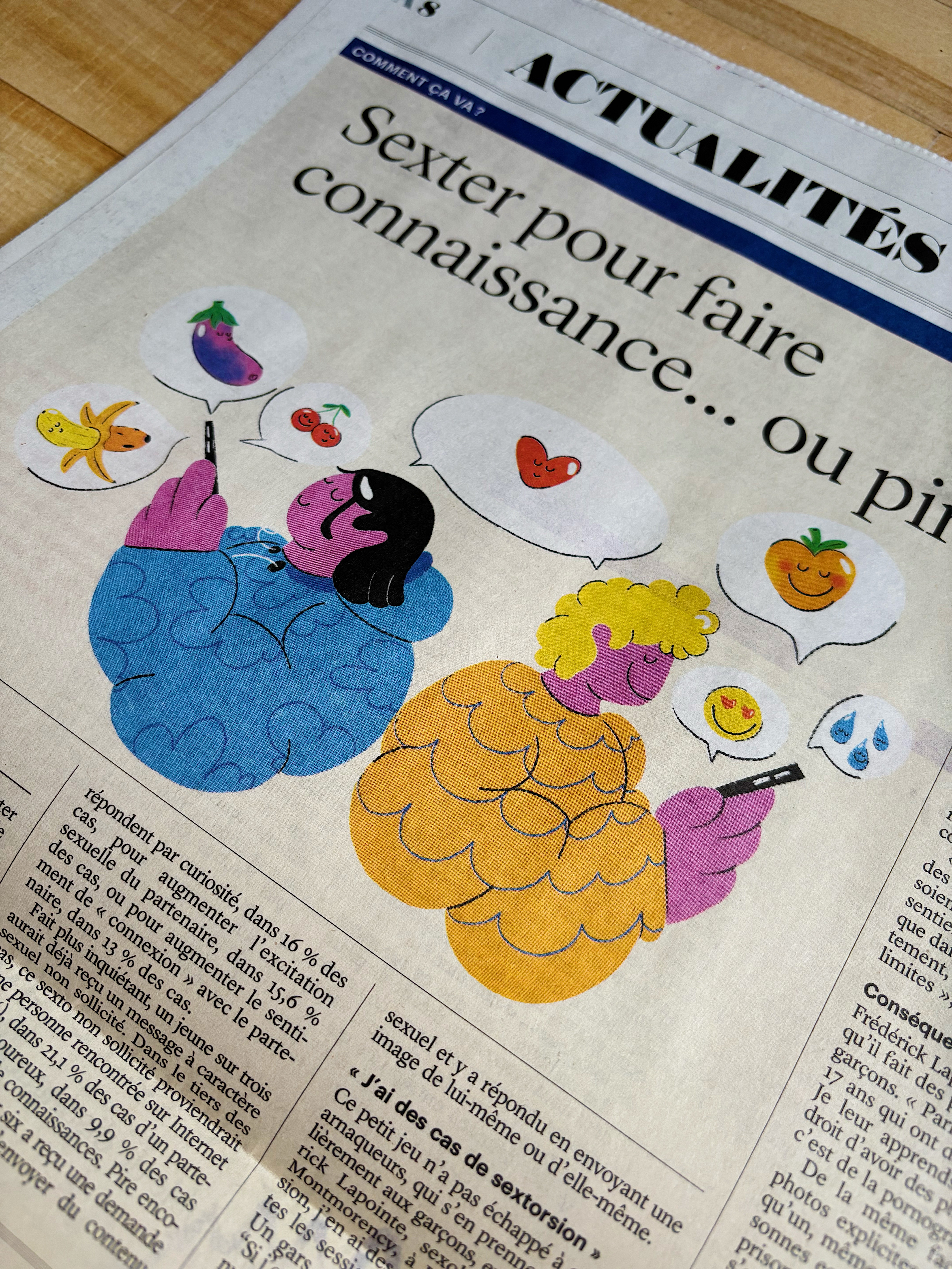 A series of illustrations on the theme ‘How are you?’, published in Le Devoir newspaper, aiming to capture the pulse of current events across various topics.